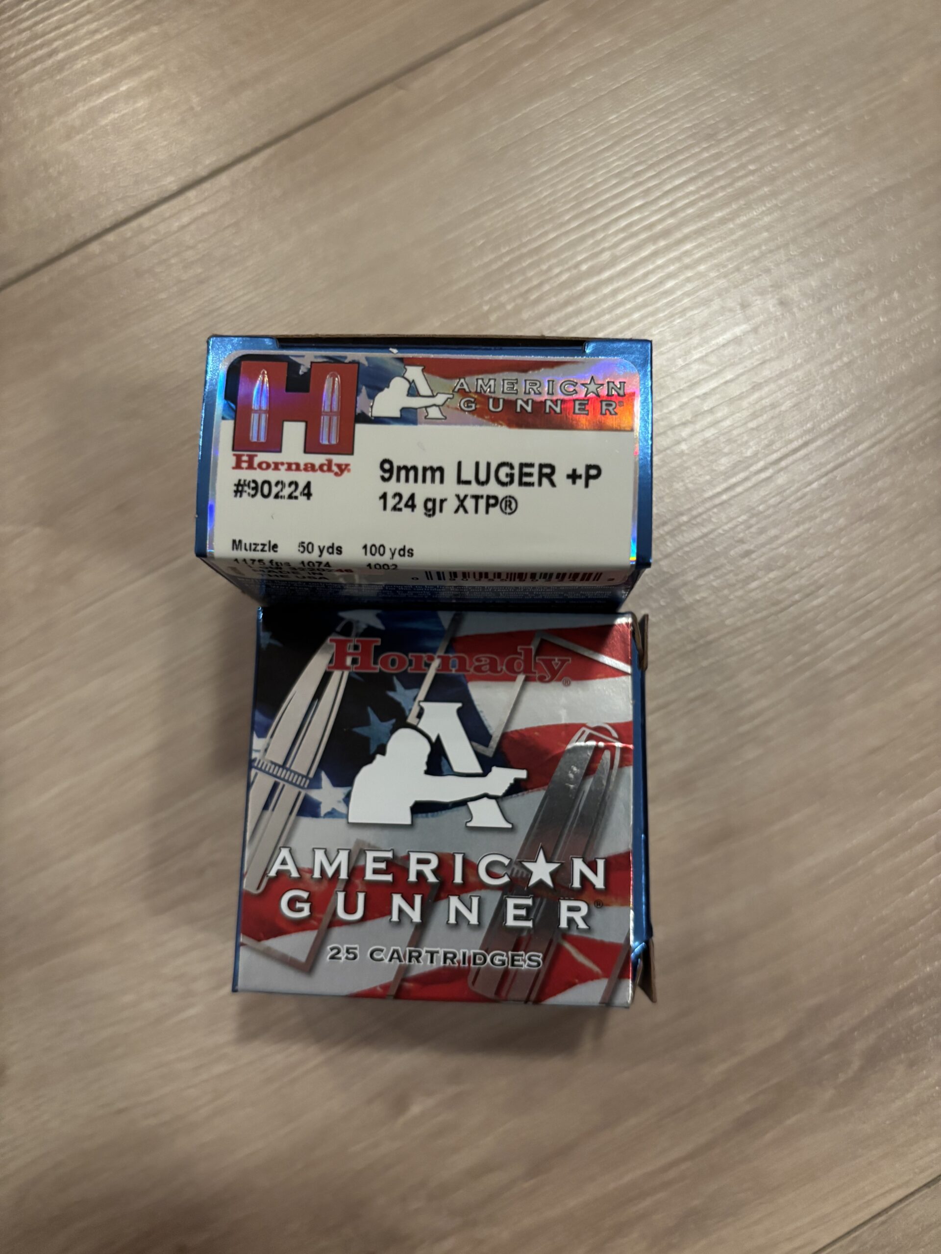 Tveir kassar af þessum 9mm Luger Hornady 124gr XTP hollow point.