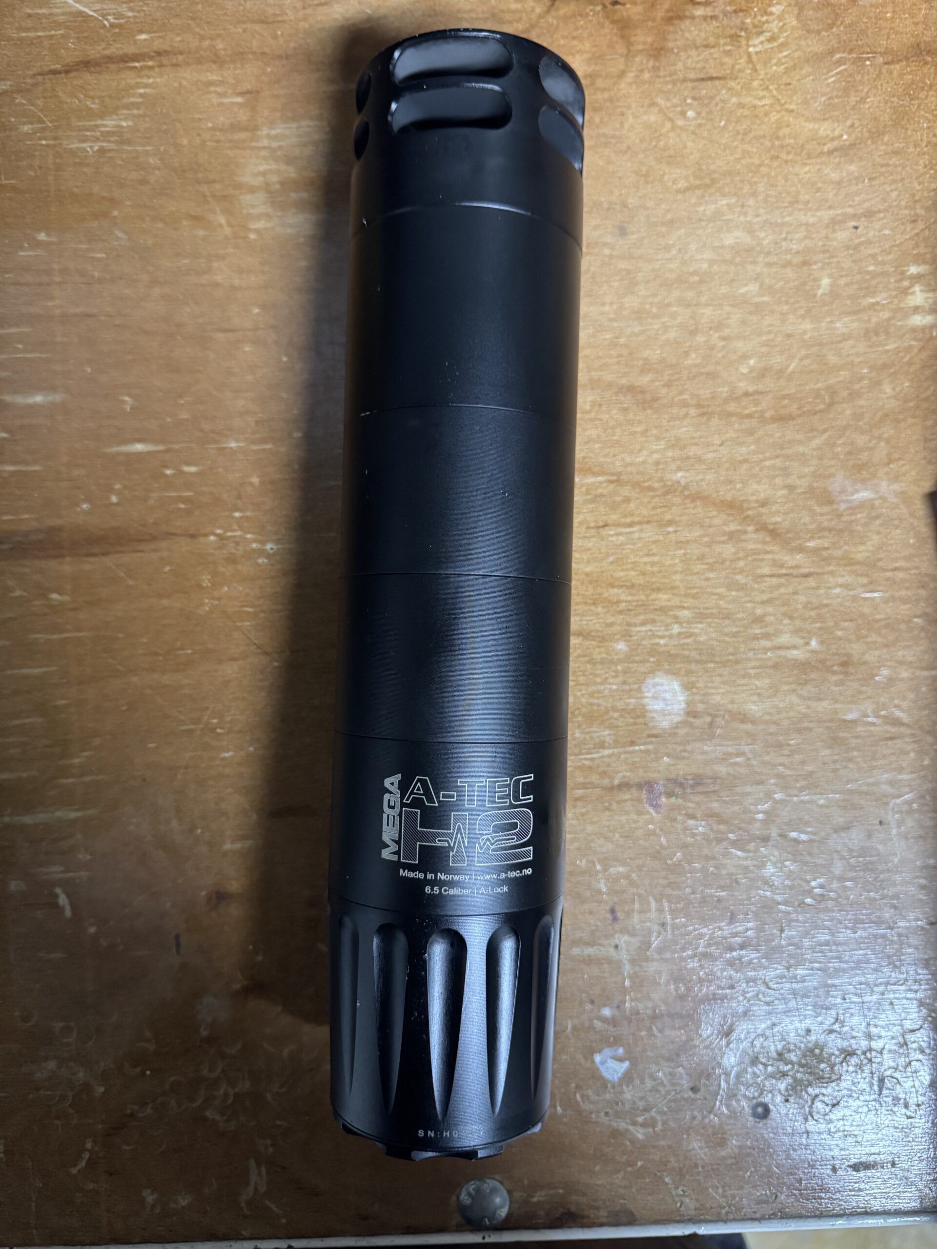 Frábær hjóðdeyfir sem þaggar vel niður. Er með Brake sem minkar bakslag mikið. A-lock hraðtengi. Skotin ca 200 skotum aðalega 222 Rem svo hann er óslitin.