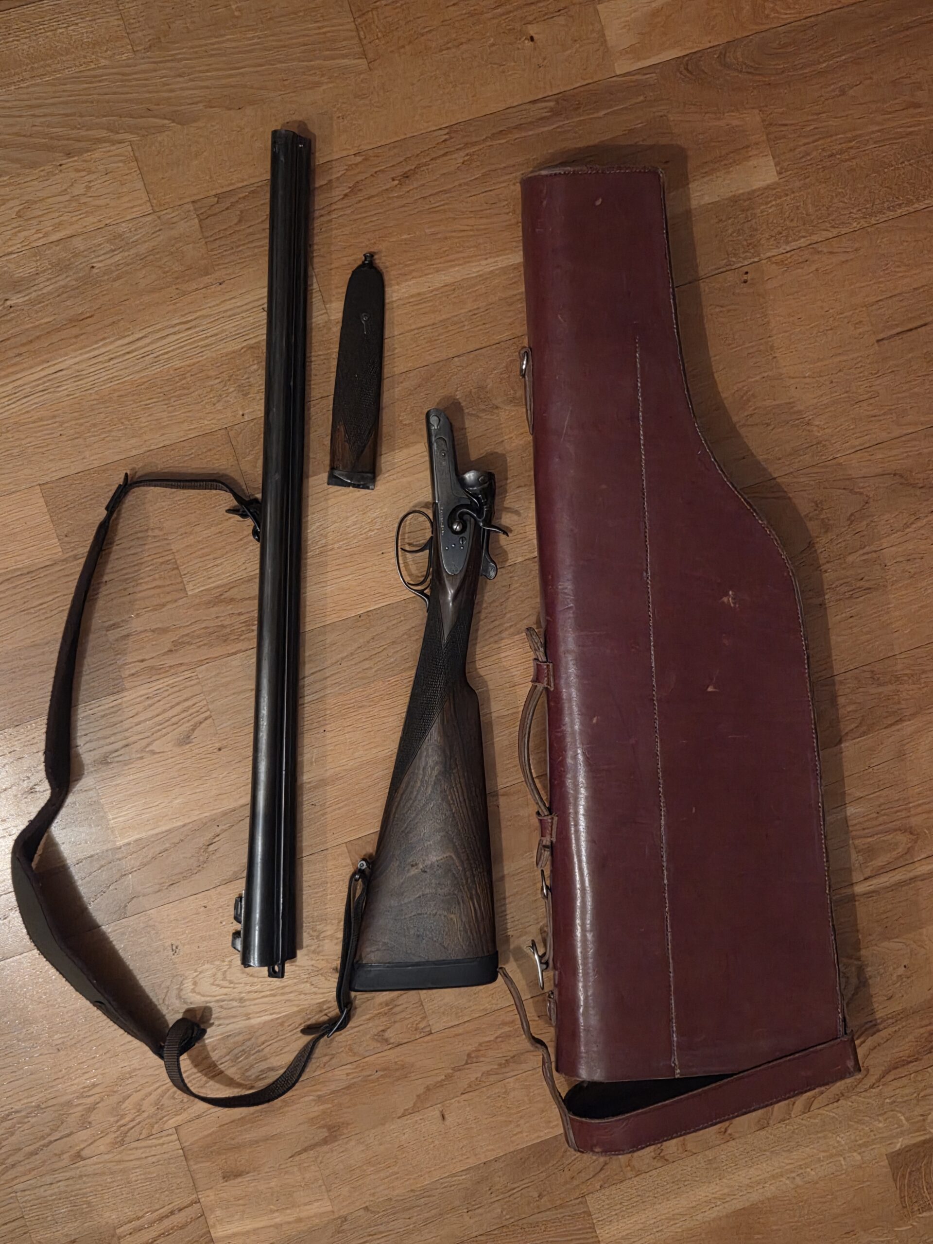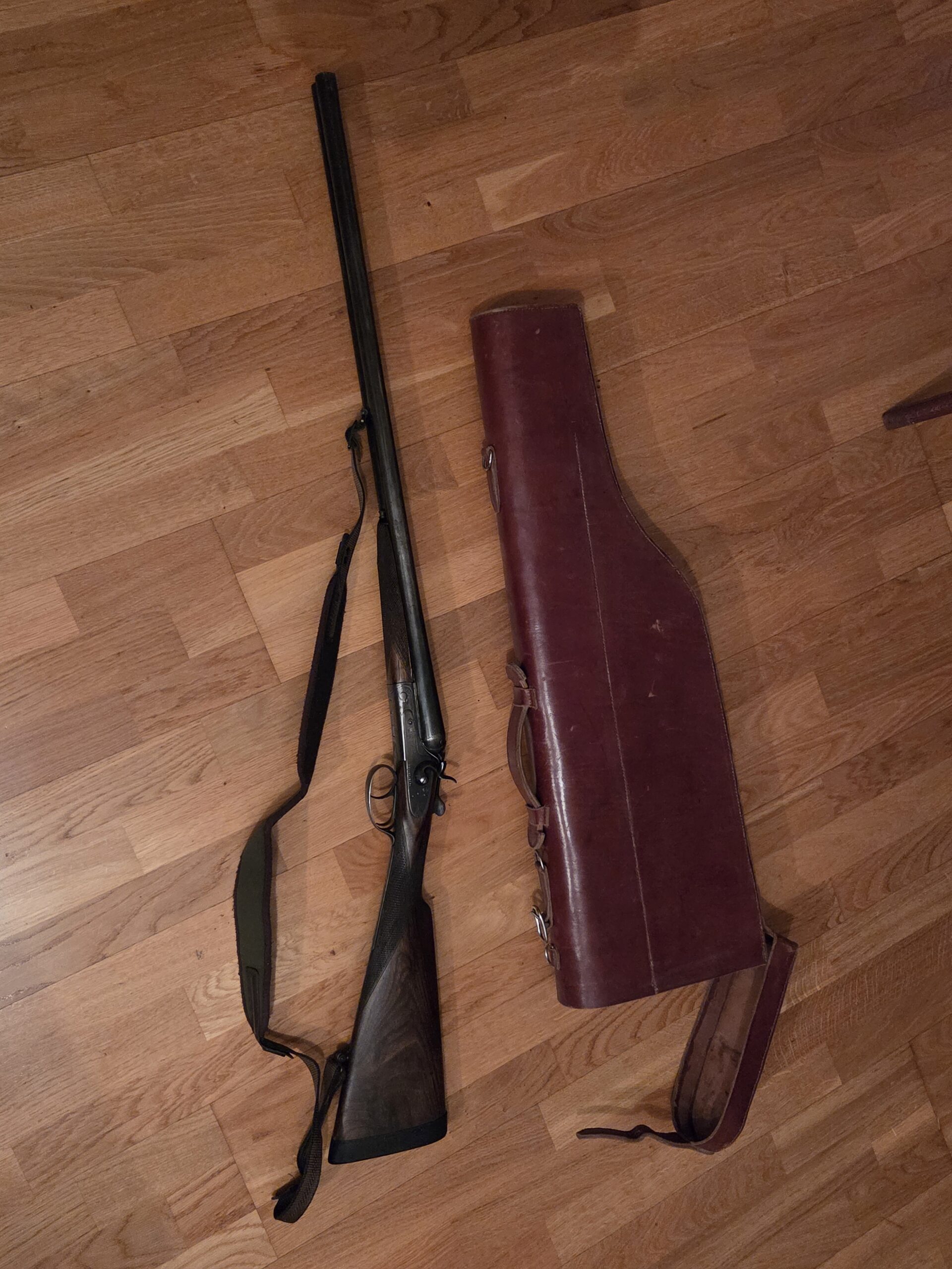 Falleg gömul tvíhlaupa haglabyssa frá Saint-Étienne í Frakklandi, líklega yfir 100 ára gömul.