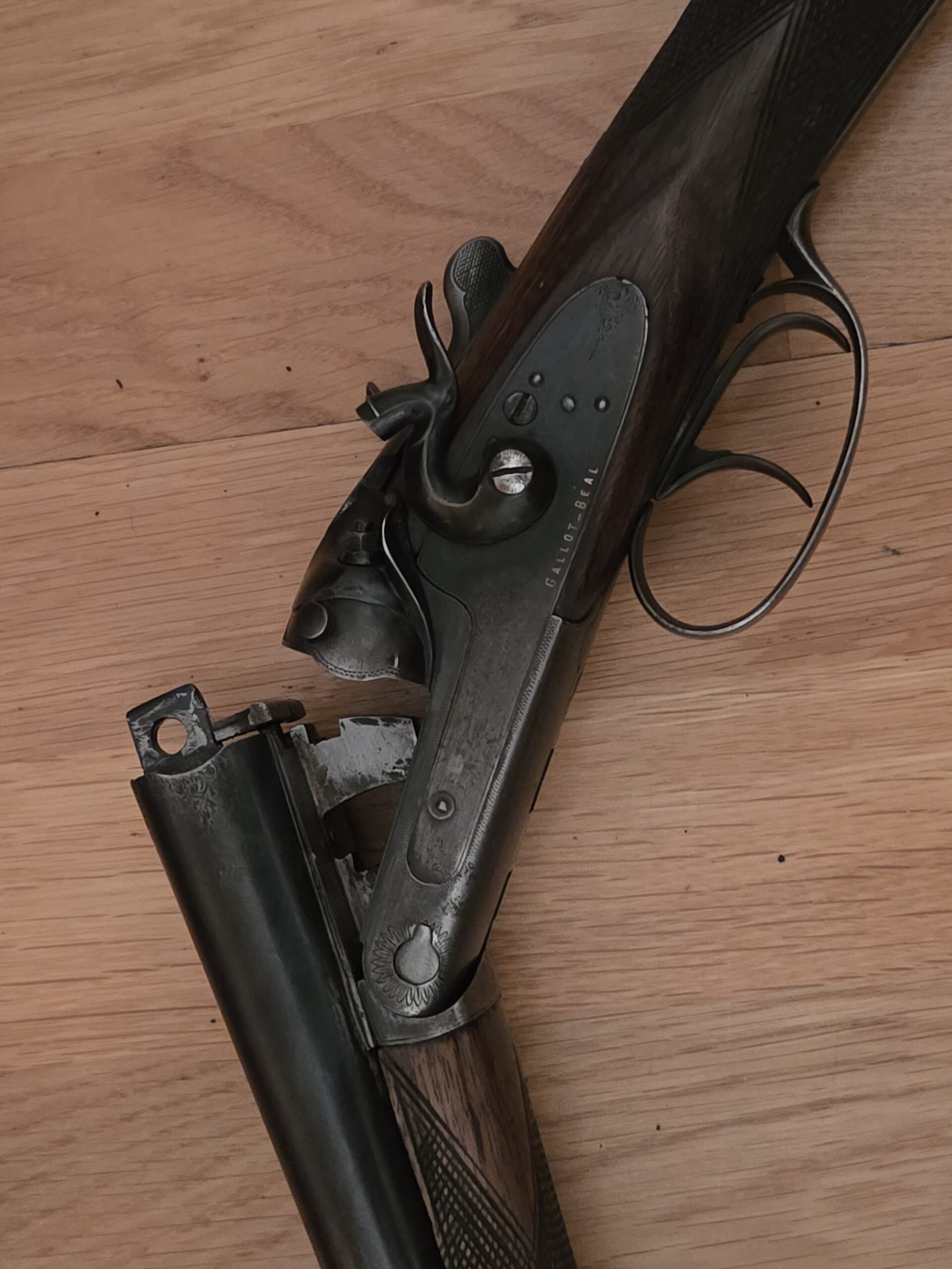 Antik frönsk tvíhlaupa haglabyssa (Saint-Étienne, ca. 1900)