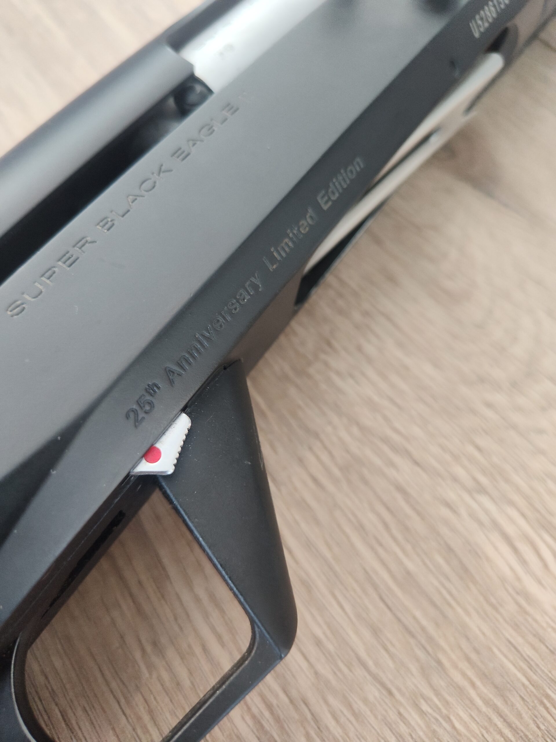 25 ára afmælis útgafa. Ryðfrír bollti og byssan öll keramik húðuð þannig að hún ryðgar ekki. Lítið skotin og selst vegna lítillar notkunar. 3.5 tommu lás og 28 tommu hlaup. Extend þrengingar ofl. Þessi byssa kemur ekki aftur og að margra mati mikið betri en SBE3.