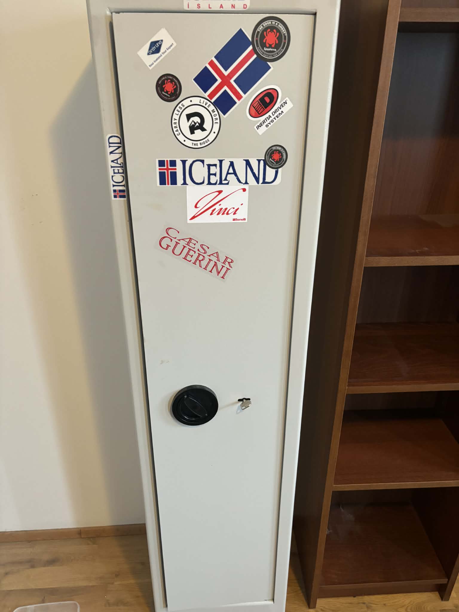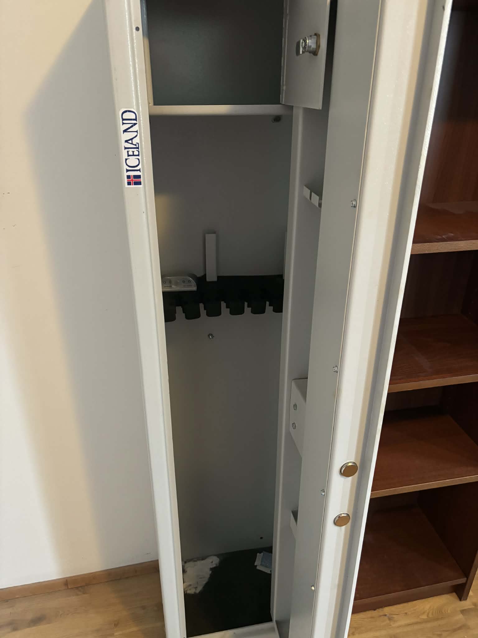 Byssuskápur fyrir 7 byssur – með læsanlegu innra hólfi