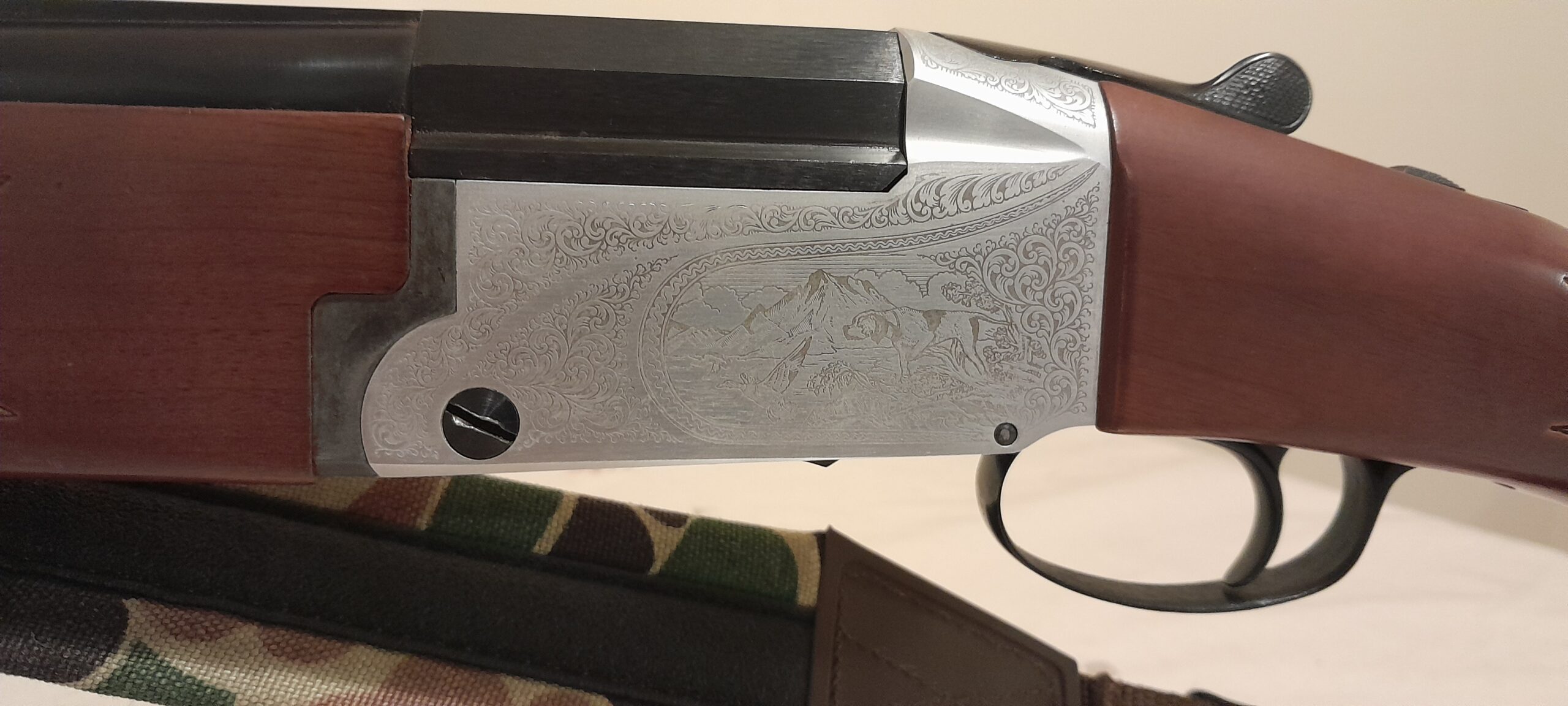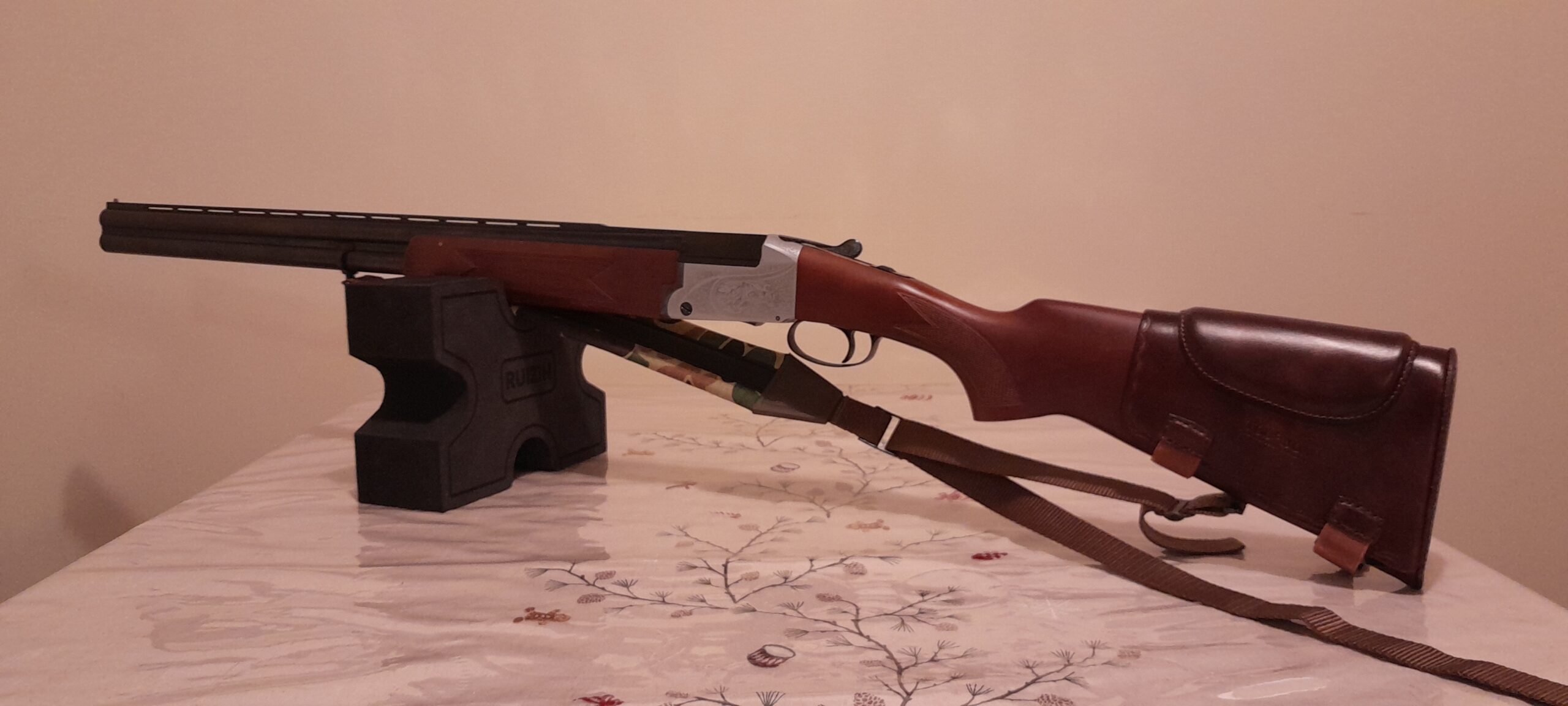 Ítölsk nánast óskotin 12g 3″ magnum undir yfir haglabyssa, yfirfarin af Jóa byssusmið. Leður kinnpúði. Einn gikkur.