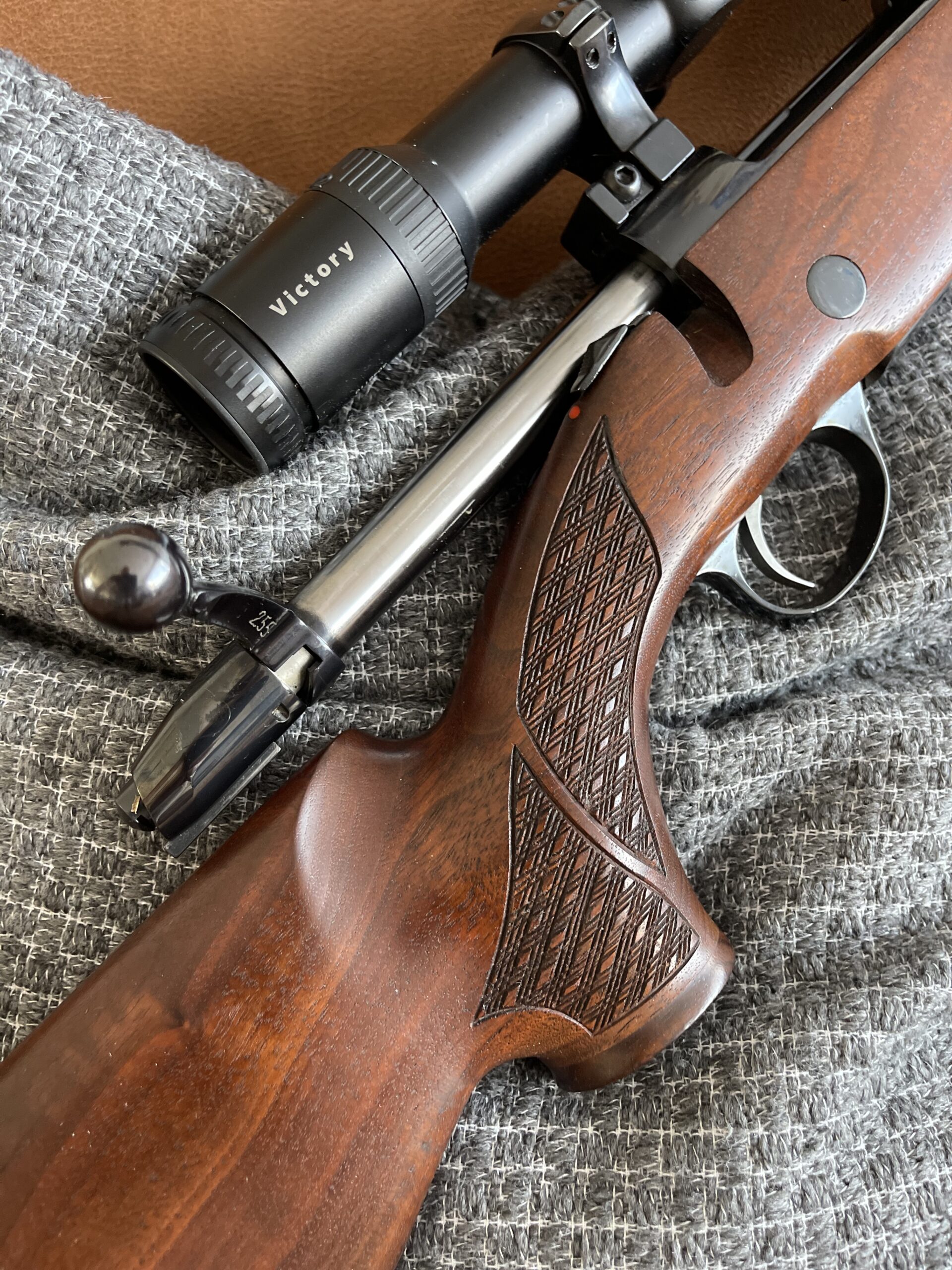 Riffilinn og kíkirinn er keypt nýtt 2007 sami eigandi allan tímann. Riffilinn er mjög litið skotinn og hugsað vel um hann allann tímann og lítur hann allur mjög vel út. Útskorinn, skreyttur, mjög fallegur riffill.