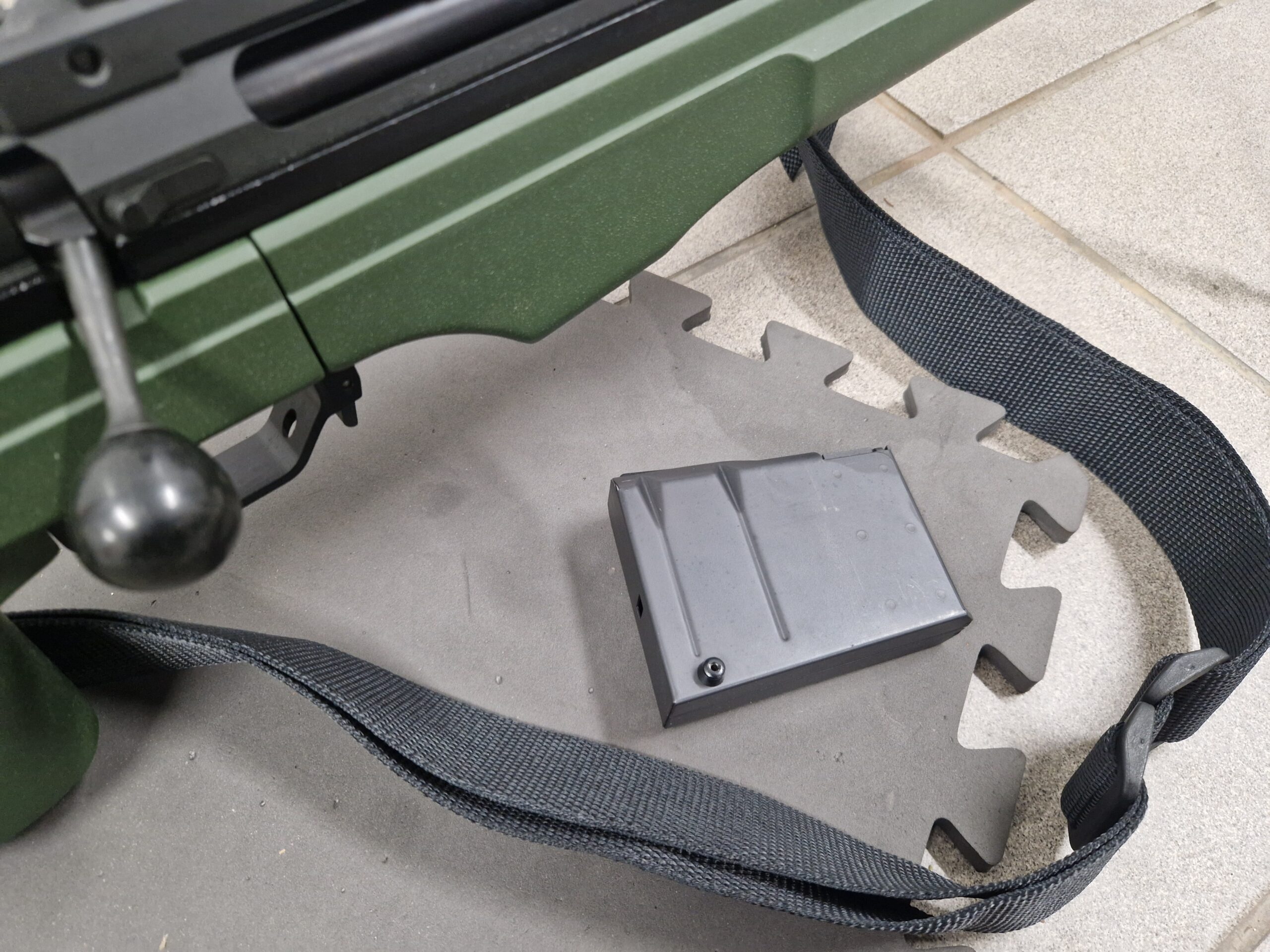 Sterk og góð byssutaska með hjólum fylgir.