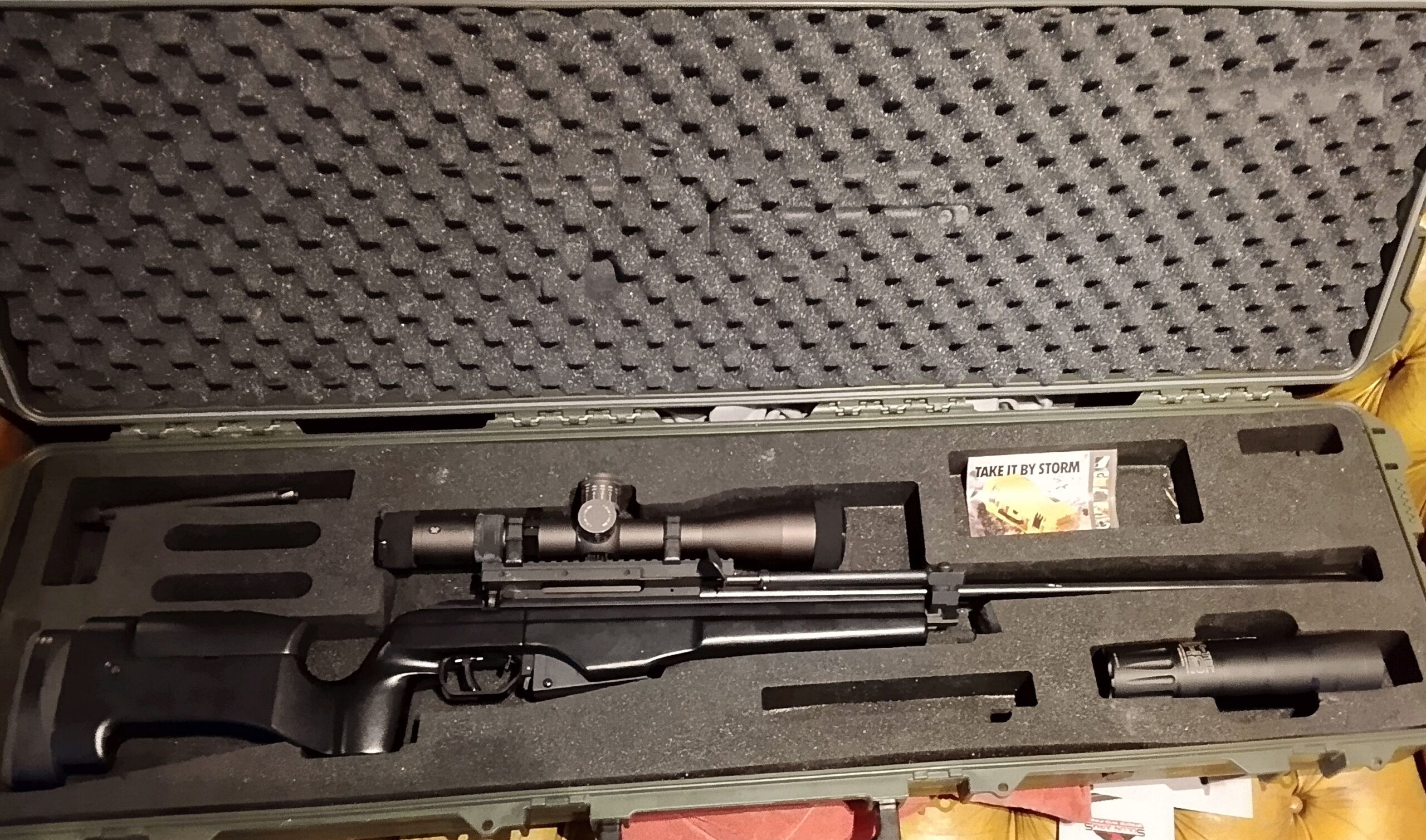 As New – selling on behalf of client – complete package – Bi-Pod Vortex Top of the long range scopes. ATEC Moderator – all as new in a Storm Case