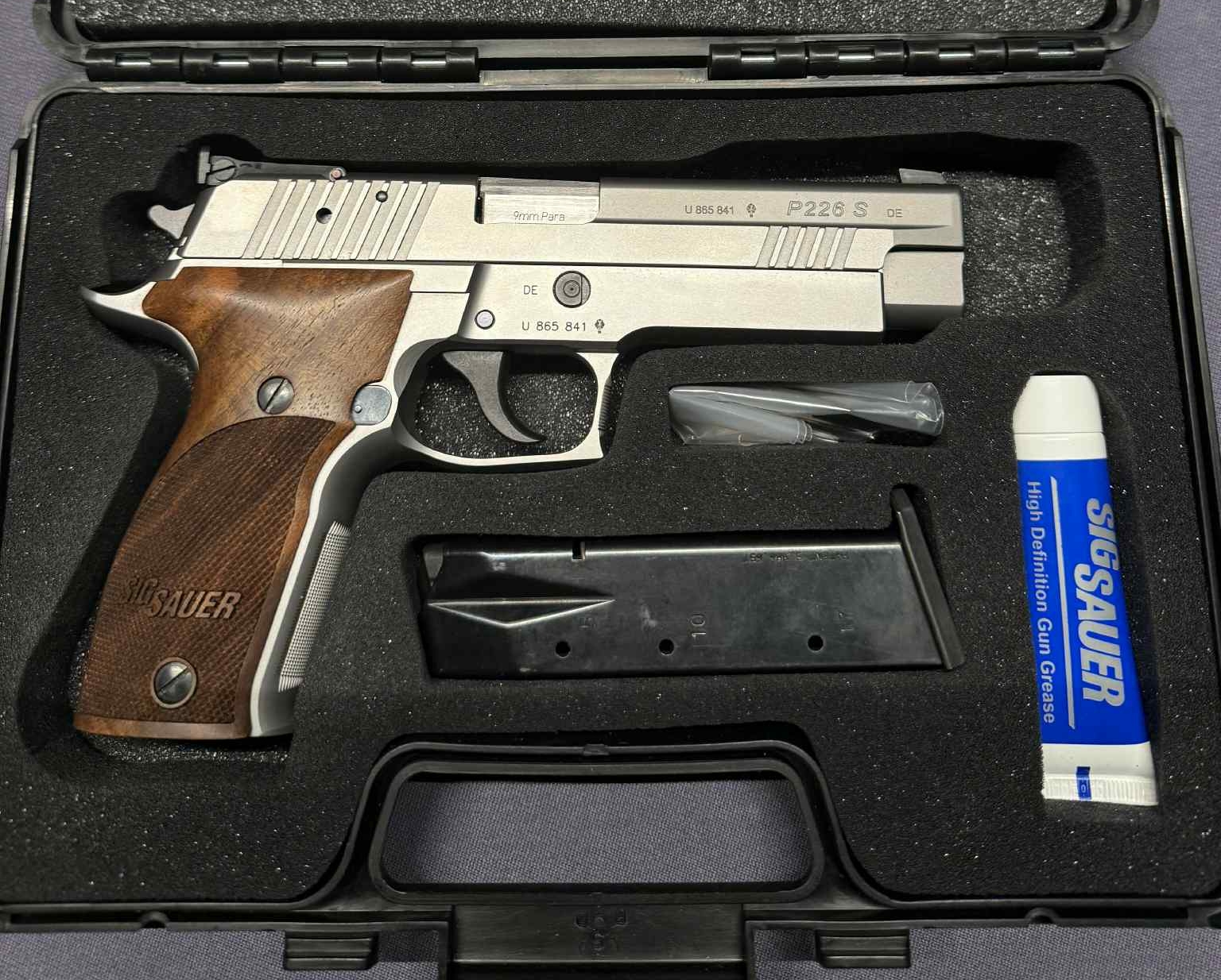Lítið sem ekkert notuð Sig Sauer P226 S skammbyssa. Þessar komu til landsins í kringum 2010 til 2012 og þykja vera meðal bestu 9mm skammbyssa sem framleiddar hafa verið. Umrætt eintak er virkilega vel með farið. Áhugasamir geta sent mér skilaboð gegnum Byssusöluna.