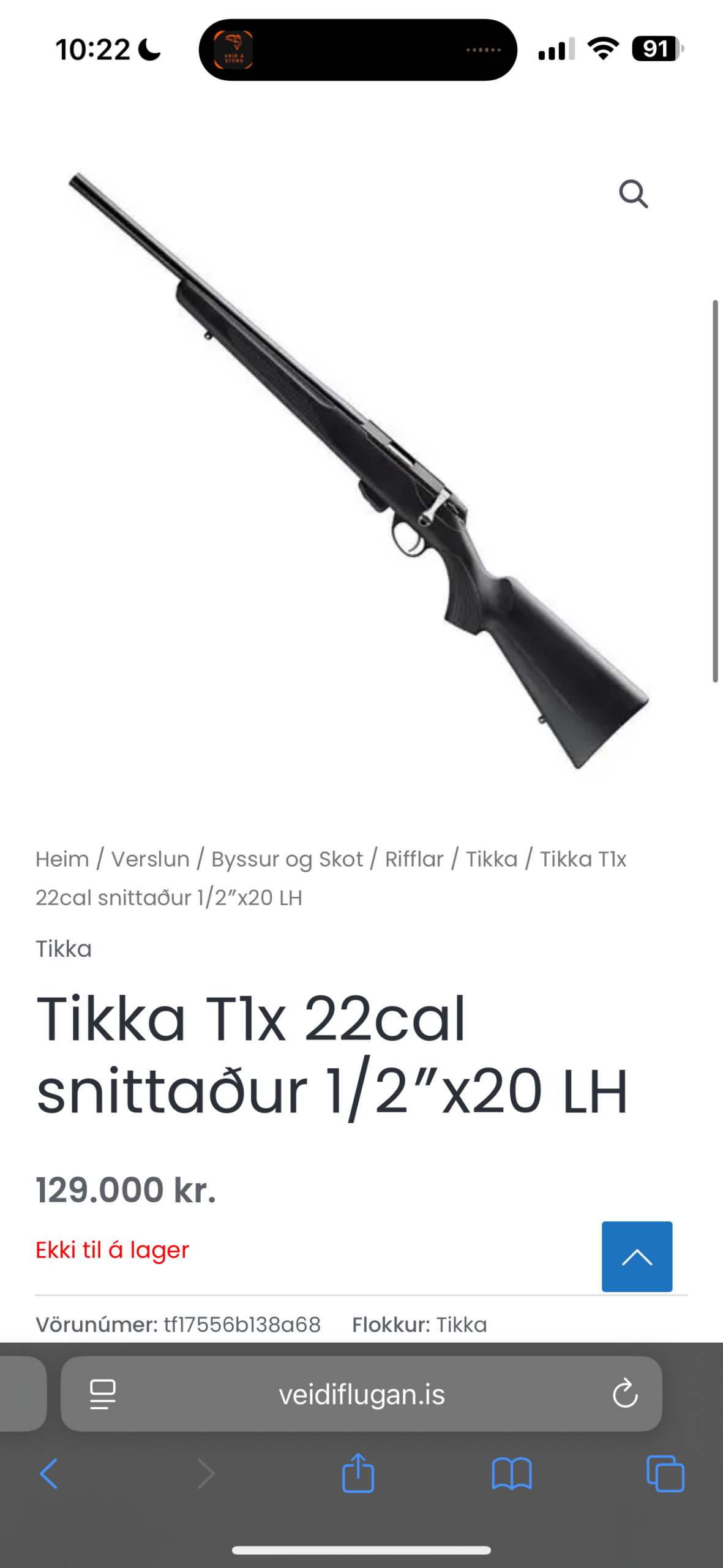 Tikka T1X 22cal snittaður 1/2” x20 vinstri handar