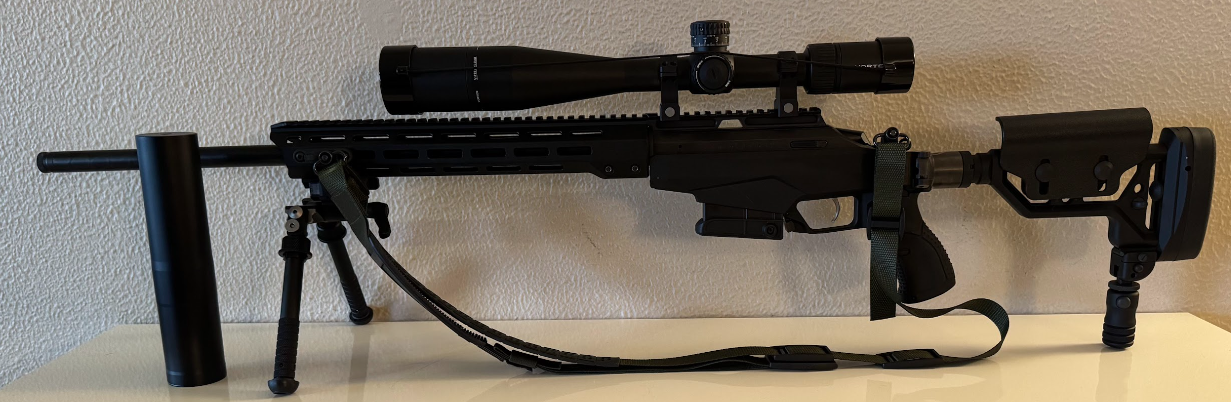 Lítið notaður Tikka T3x Tac A1 .308 riffill með eftirfarandi aukabúnað.