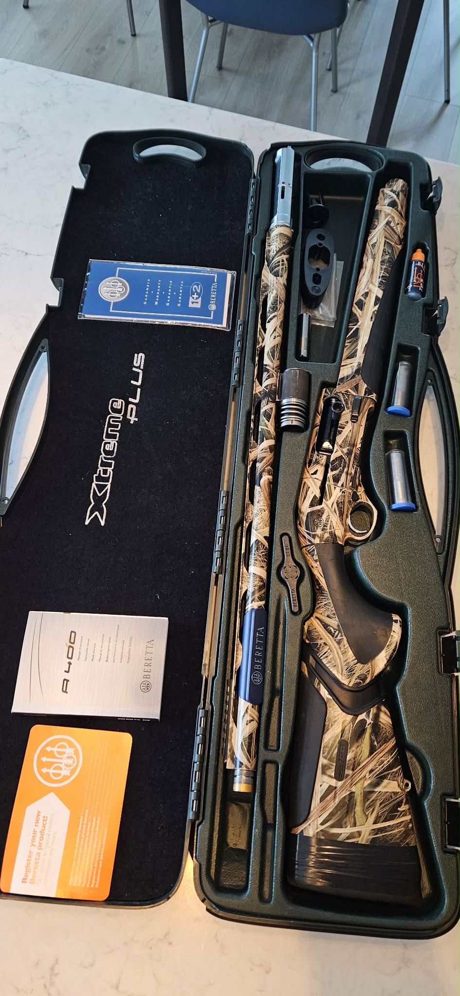 Til sölu Beretta A400 Xtreme Plus Camo hlaup Öflugasta hálfsjálfvirka haglabyssan frá Berettu, með dempara í skeptinu til að mýkja bakslagið, tekur 3,5″ skot, 28″ hlaup, 4 þrengingar og lykill fylgir, þyngd 3,6 kg. verð 330þús uppl. í síma 691-6612