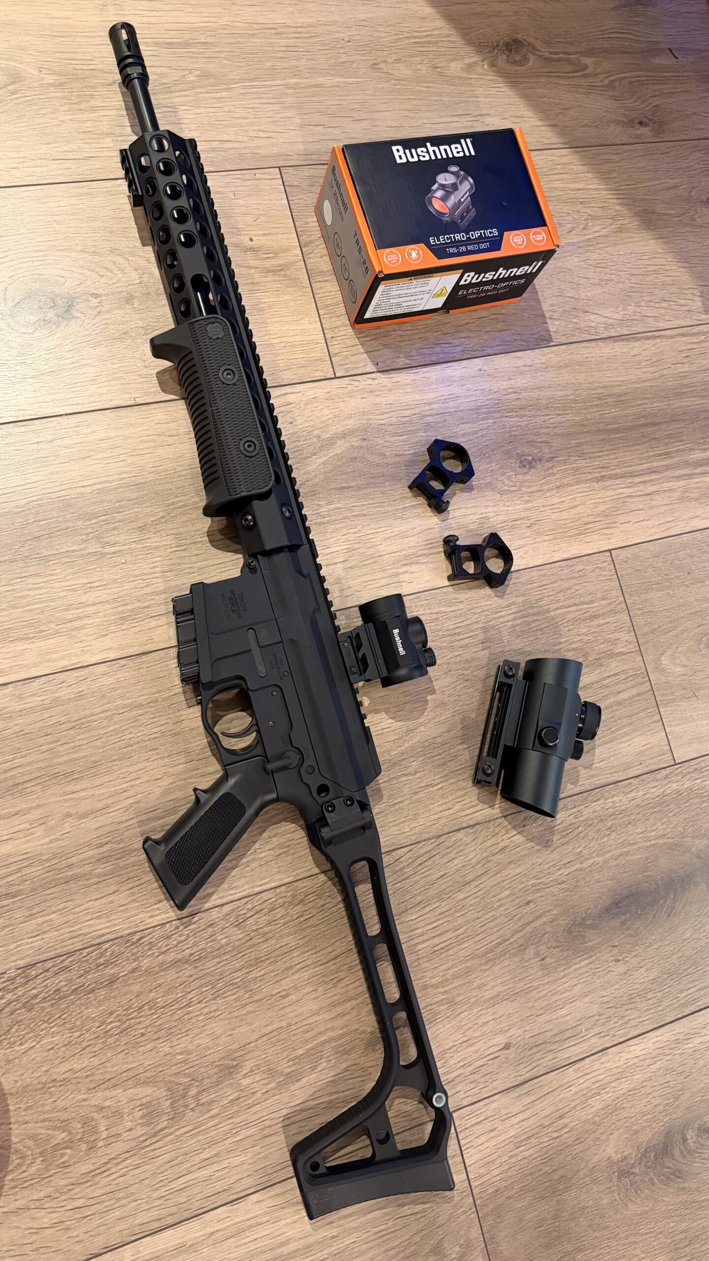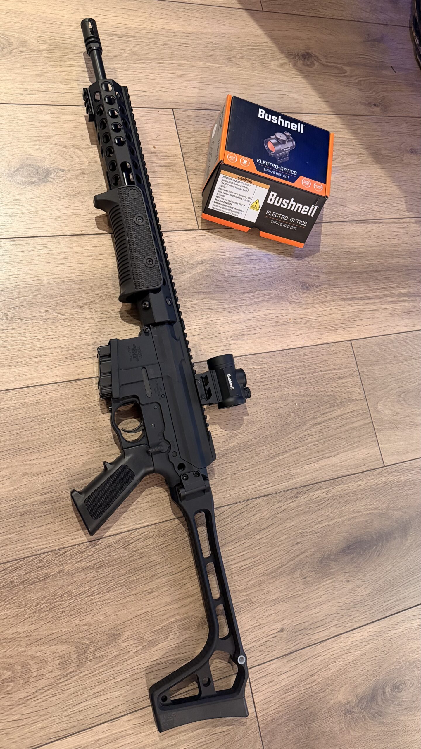 Troy AR-15 pumpa í 223 með mjög góðum bushnell trs 26 red dot sight og picatinny fyrir tvífófót