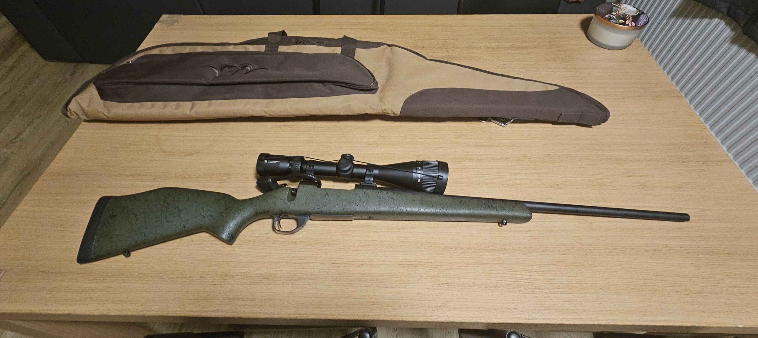 Flottur rifill, lítið notaður í mjög góðu ástandi. ósnyttaður þannig ekki hægt að hafa hljóðfeyfi nema þú fáir einhvern til að skipta hann fyrir þig. Fylgir með Crossfire II 6-24×50 sjónauki og blaser riffilpoki.