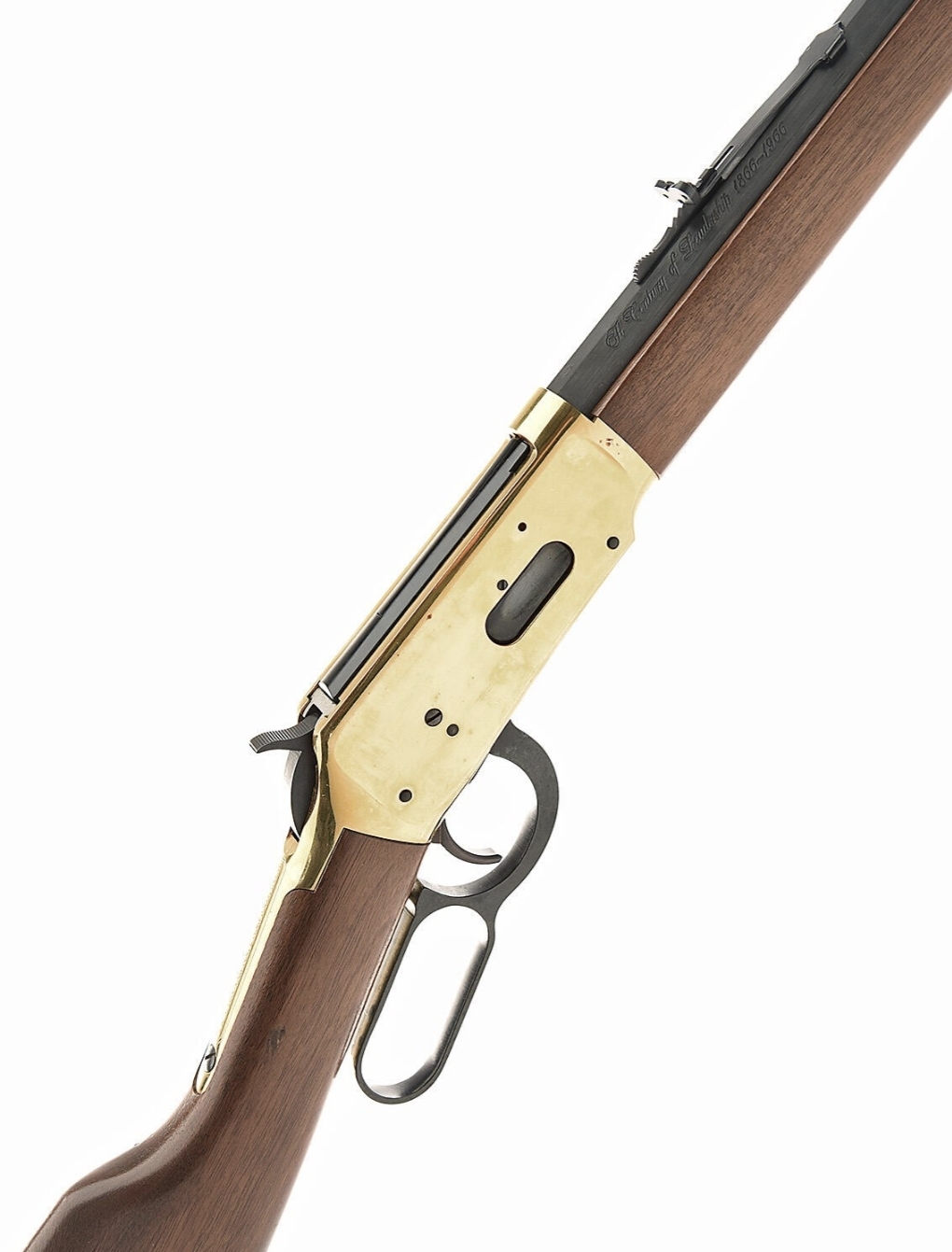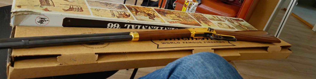 Aldrei verið hleypt af þessari. Í orginal kössum með ábyrgðarskíteini frá 1966 (100 ára afmælisútgáfa). Hún er húðuð að hluta til úr 24 karata gulli. Þetta er vinsæli rifill er sagður hafa unnið vestrið (hvað svo sem menn segja um það) þetta er mjög fallegur safngripur.